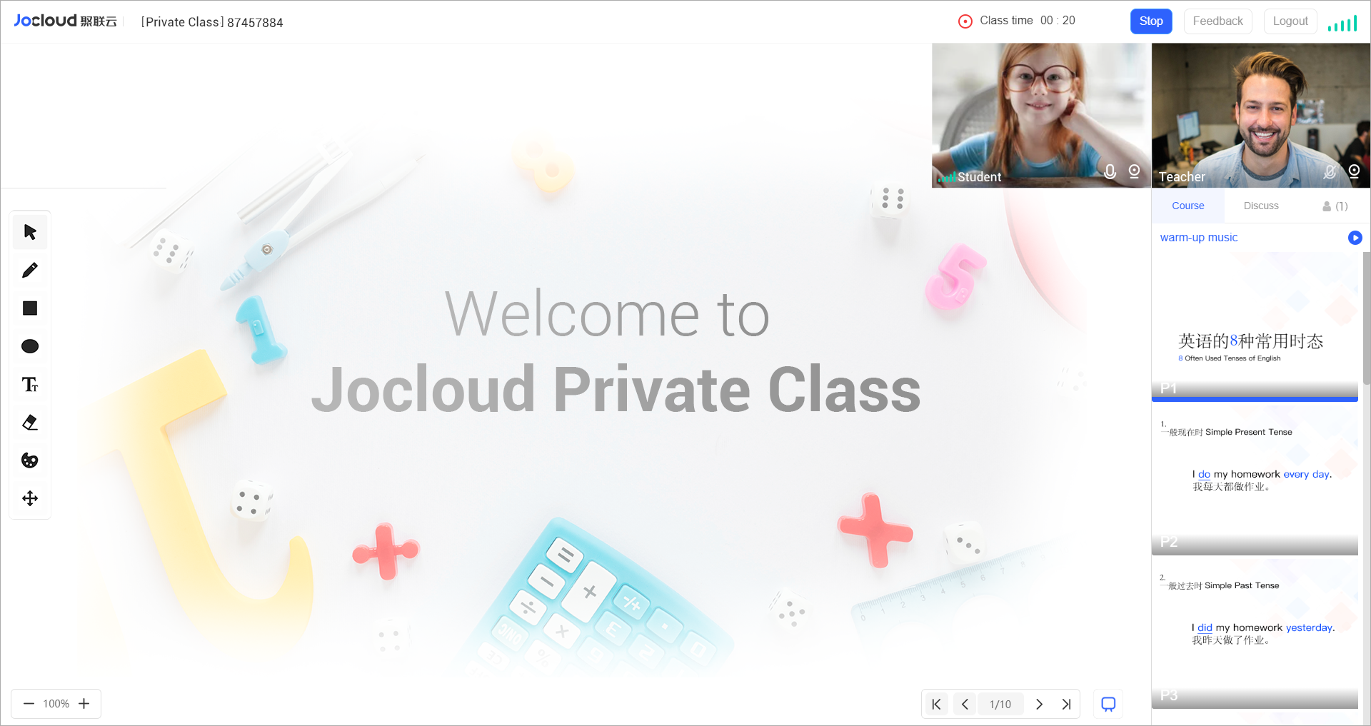 | Warm-up music | Teachers can play warm-up music before and during class. |